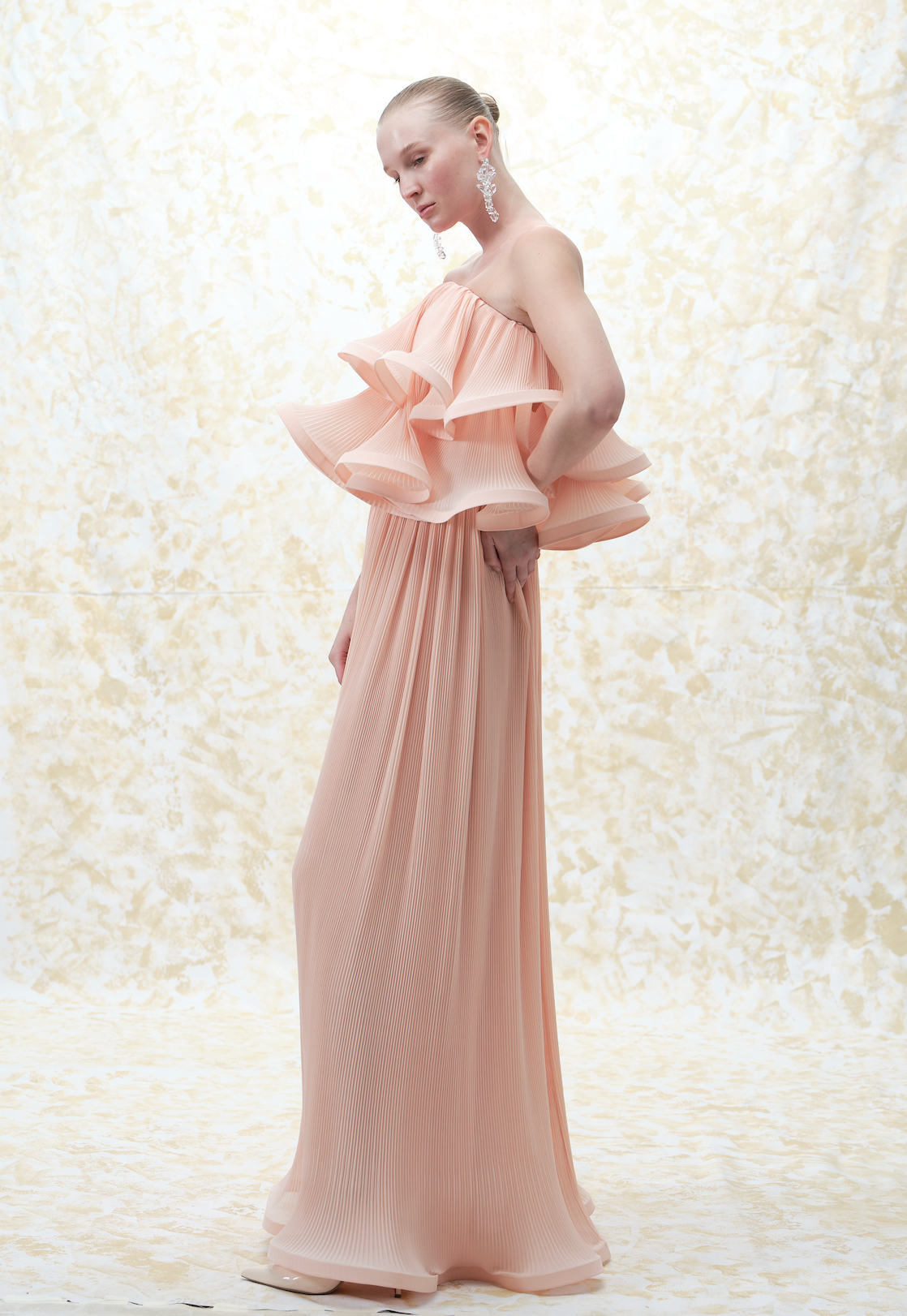 Relaxed-fit dress enlivened with layered pleated chiffon for a playful touch